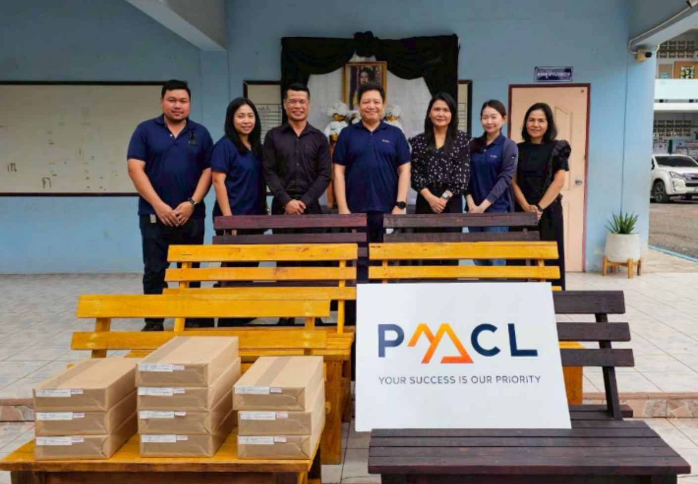 ผู้บริหารและพนักงาน PMC ได้ส่งมอบเก้าอี้นั่งเล่นให้แก่นักเรียนโรงเรียนโคกขาม